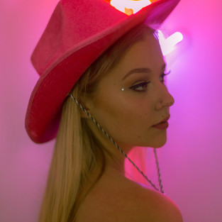 #4. Gather up some props! Something as simple as a stool, flowers or a hat can really bring more fun into your photoshoot. I used a pink cowboy hat that I bought the other day for an upcoming photoshoot. (Stay tuned for that. ;)) I also had some left over gems from last weekend when I celebrated St. Patricks Day that I put on the outer corner of my eyes to jazz up my makeup look. :-)